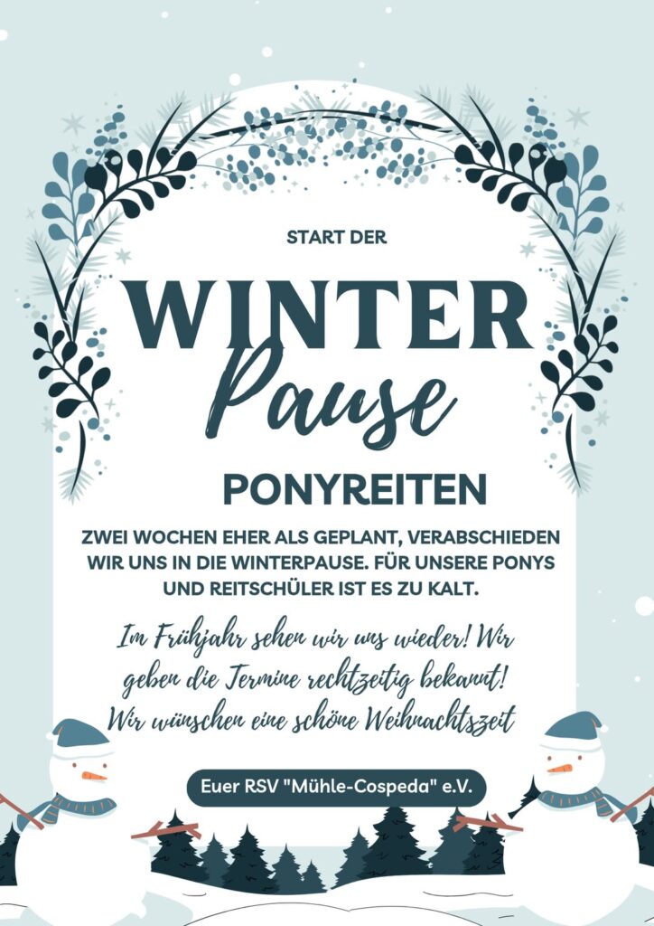 Etwas früher als geplant verabschieden sich unsere Ponys und Reitmädels in die wohlverdiente Winterpause. Die angekündigten frostigen Temperaturen lassen uns leider keine andere Wahl –