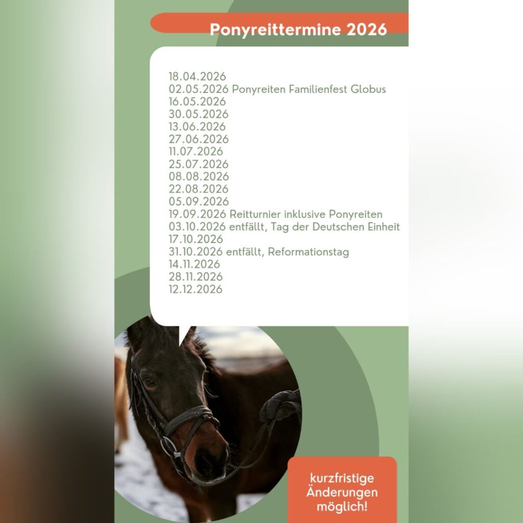 Nach Ostern beenden wir unsere Winterpause vom Ponyreiten und wollen mit unserer Erna wieder durchstarten. Alle Termine teilt Euch unsere Erna mit. Ansonsten findet es