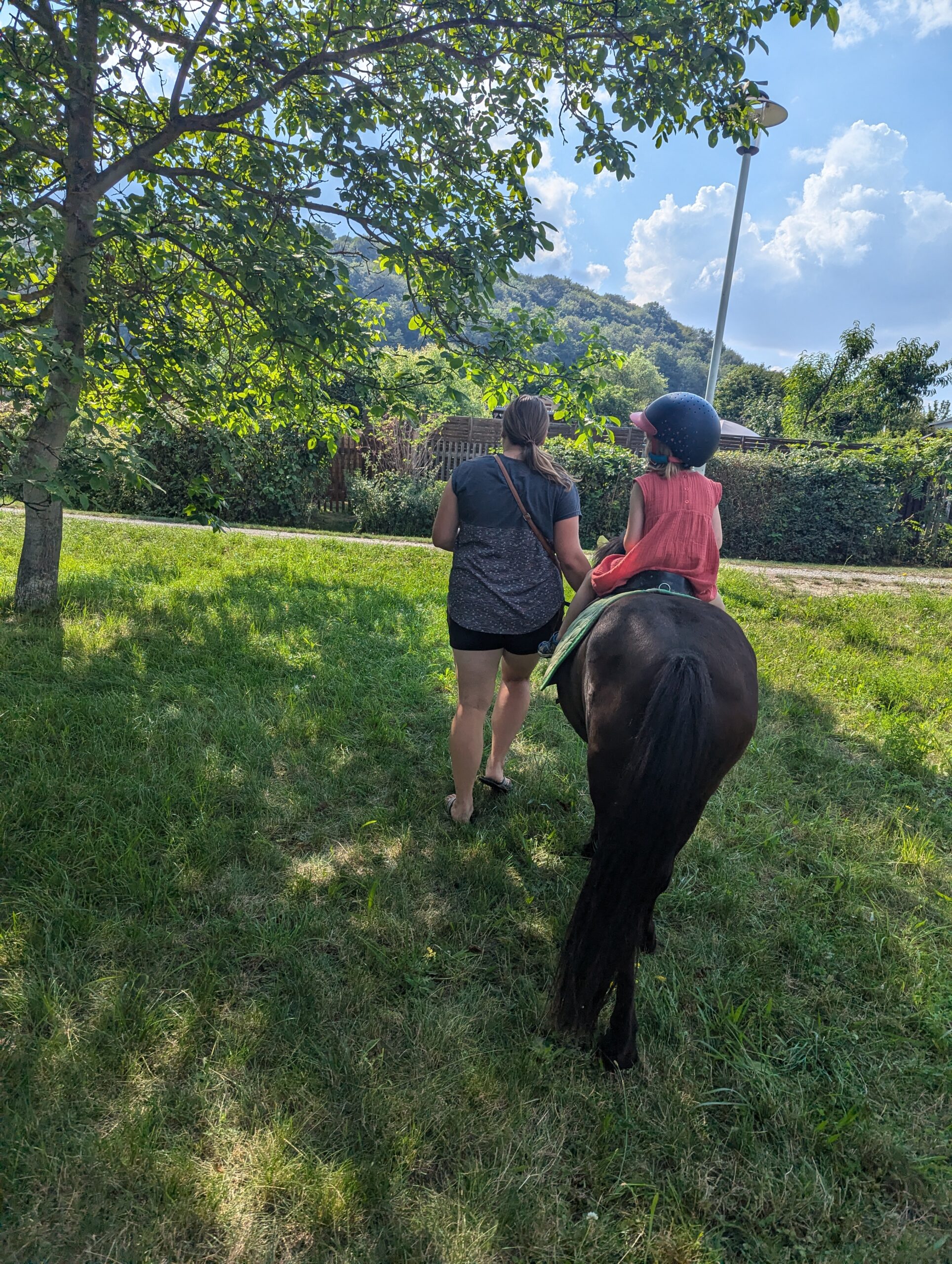 Jeden zweiten Samstagnachmittag gibt es von 14.30 bis 16.30 Uhr öffentliches Ponyreiten für Kinder. Es findet immer in der geraden Kalenderwoche statt. Natürlich stehen Reitkappen zum Schutz der Kinder zur Verfügung.